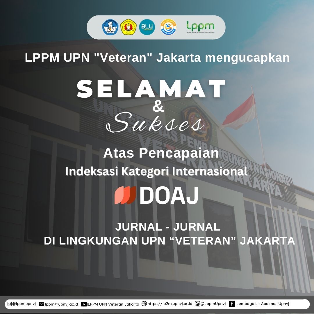 LPPM UPN “Veteran” Jakarta mengucapkan Selamat dan Sukses kepada Jurnal-Jurnal UPNVJ yang telah terindeksasi Internasional DOAJ. Jurnak-Jurnal tersebut diantaranya adalah :