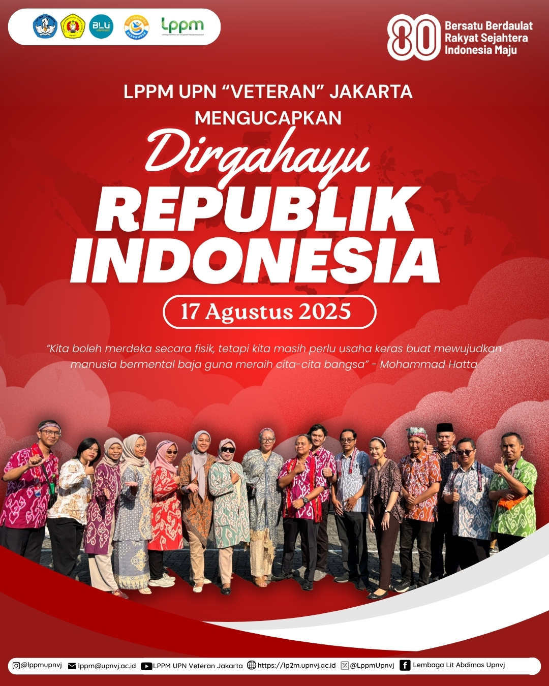 LPPM UPN “Veteran” Jakarta (21/08/2025) – Lembaga Penelitian dan Pengabdian kepada Masyarakat (LPPM) Universitas Pembangunan Nasional “Veteran” Jakarta mengucapkan Selamat...